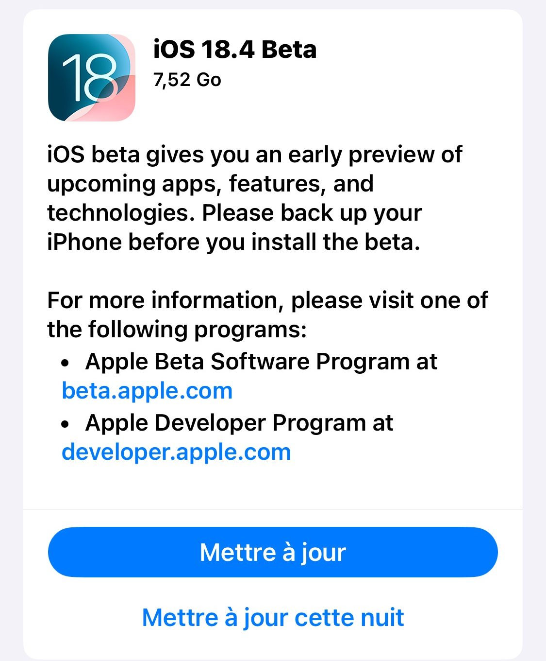 Apple vient de publier la bêta 2 d’iOS 18.4, et plusieurs améliorations et nouvelles fonctionnalités…