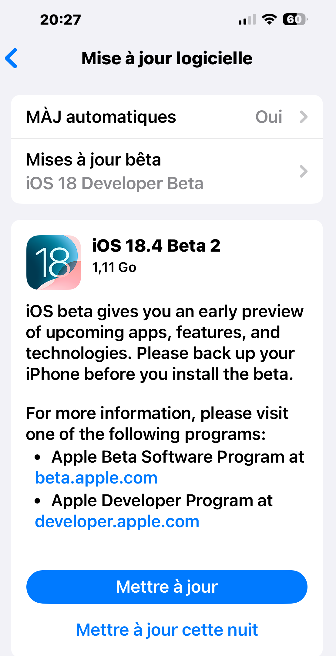 La nouvelle version tant attendue d’iOS 18.4 devrait sortir en version Beta 1 ce soir…